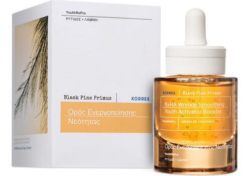 Το Korres Black Pine Primus 6xHA Wrinkle Smoothing Youth Activator είναι ένα ενισχυμένο water-gel booster serum με 6 τύπους υαλουρονικού οξέος για λείανση των λεπτών γραμμών και ρυτίδων.