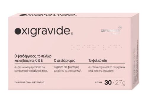 Το Oxigravide ® είναι ένα σύμπλεγμα αντιοξειδωτικών, βιταμινών και μετάλλων για γυναίκες, σχεδιασμένο να υποστηρίζει τη φυσιολογική γονιμότητα και την αναπαραγωγική λειτουργία.