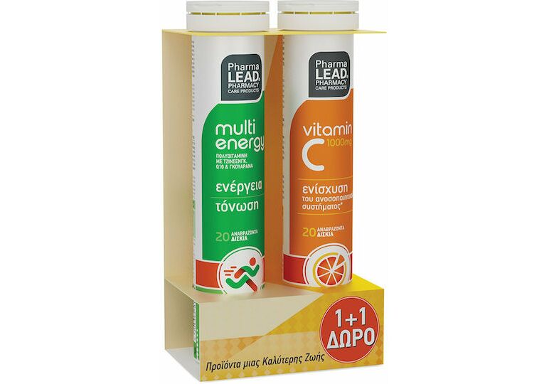 Pharmalead Multi Energy & Vitamin C 1000mg Πολυβιταμίνη 20 αναβράζοντα δισκία & Vitamin C 1000mg 20 αναβράζοντα δισκία για Ενέργεια & Ενίσχυση του Ανοσοποιητικού 1000mg Multiflavoured