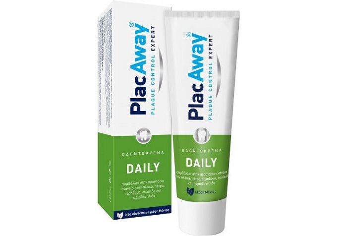 Η Plac Away Daily Care Toothpaste είναι μια καθημερινή φθοριούχος οδοντόκρεμα που συμβάλλει στην προστασία ενάντια στην τερηδόνα και την ουλίτιδα, και παράλληλα βοηθά στην εξισορρόπηση της φυσιολογικής χλωρίδας του στόματος.