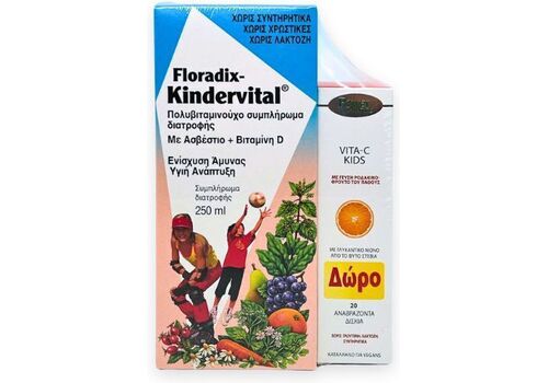 Το Floradix Kindervital είναι μία παιδική πολυβιταμίνη σε πόσιμη μορφή, με ευχάριστη γεύση από φυσικούς χυμούς φρούτων και εκχυλίσματα φυτών. Περιέχει ασβέστιο και 9 πολύτιμες βιταμίνες που συμβάλλουν στη σωστή ανάπτυξη των παιδιών.