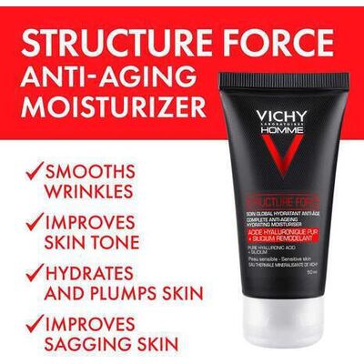 Η Vichy Homme Structure Force είναι μια αντιγηραντική κρέμα προσώπου και ματιών για τους άνδρες.