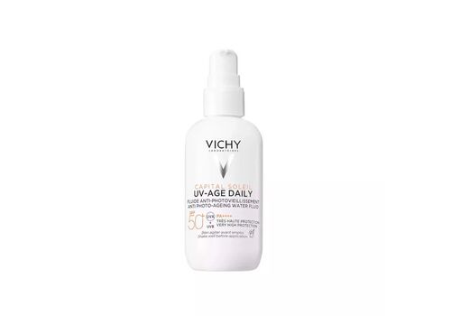 Το Vichy Capital Soleil UV-Age Daily Sunscreen SPF50+ είναι ένα εξαιρετικά λεπτόρρευστο αντηλιακό πολύ υψηλής προστασίας, με δράση κατά της φωτογήρανσης και των κηλίδων.