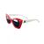 Παιδικά γυαλιά ηλίου με κόκκινο χρώμα στη μετώπη και άσπρους βραχίονες.Δ ιαθέτουν προστασία UV400 και Polarized φακό.