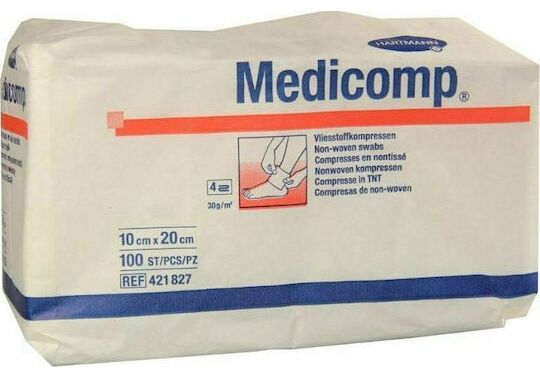 Γάζα Αποστειρωμένη Medicomp Μη Υφασμένη (Non Woven)  10x20cm 25x2τμχ  REF:411075 Hartmann