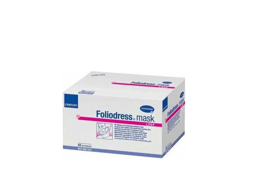 Χειρουργικές μάσκες με λάστιχο medical – Type II Foliodress Hartmann για εύκολη εφαρμογή σε συσκευασία των 50τμχ για προστασία από ιούς, βακτήρια και παθογόνους μικροοργανισμούς.