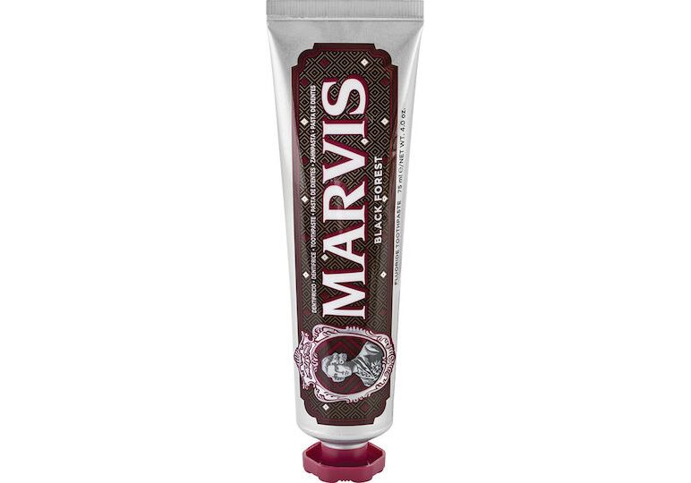 Η Marvis Black Forest είναι μια οδοντόκρεμα σχεδιασμένη για τους πιο απαιτητικούς ουρανίσκους! Μια φρέσκια βάση μέντας ενώνεται με φρουτώδεις, γλυκές νότες κερασιών, σε συνδυασμό με έντονες ζεστές νότες μαύρης σοκολάτας, marzipan και αμαρέττο. Το αποτέλεσμα θυμίζει black forest και έρχεται να ικανοποιήσει τους λάτρεις της γαστρονομίας κι όσους αναζητούν νέες εμπειρίες.