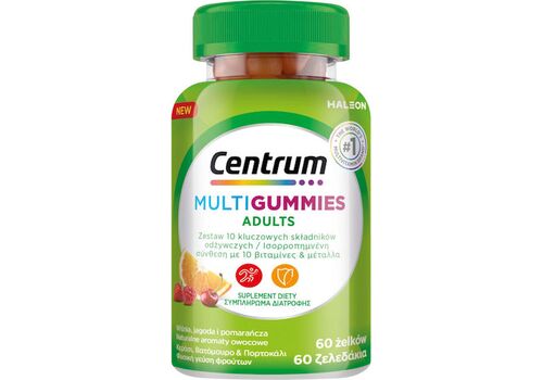 Το Centrum MultiGummies Adults είναι μία πολυβιταμίνη σε μορφή gummies με φυσική γεύση κεράσι, βατόμουρο και πορτοκάλι, ιδανική για όσους θέλουν να ενισχύσουν τον οργανισμό τους καθημερινά, εύκολα και απολαυστικά.