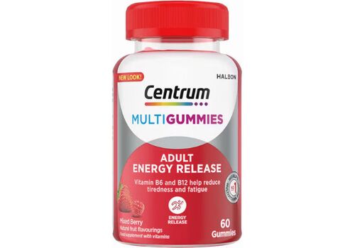 Το Centrum MultiGummies Adults Energy Release είναι πολυβιταμινούχα ζελεδάκια με γεύση φρούτων του δάσους, ιδανικά για όσους θέλουν να υποστηρίξουν την ενέργεια, ευεξία & αντοχή τους, μέσα από έναν απλό και ευχάριστο τρόπο λήψης.