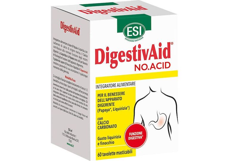 ESI DigestivAid No Acid Για τη Φυσική Ανακούφιση Δυσπεψία & Γαστρική Δυσφορία, 60ταμπλέτες