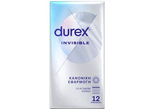 Durex Invisible Extra Sensitive-Εξαιρετικά Λεπτά Προφυλακτικά με Κανονική Εφαρμογή, 12τμχ