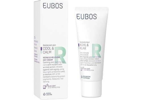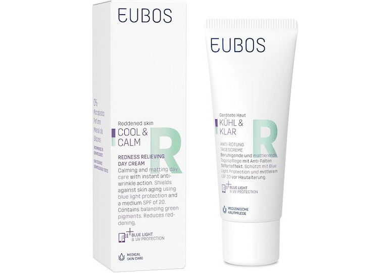 Η Eubos Cool & Calm Redness Relieving Day Cream SPF50+ είναι μία κρέμα προσώπου για χρήση το πρωί, σχεδιασμένη για άτομα με ερυθρότητα (κοκκινίλες). Περιέχει συστατικά με καταπραϋντικές ιδιότητες κατά της ροδόχρου ακμής και με αντιγηραντική δράση.