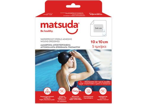 Τα αδιάβροχα αποστειρωμένα αυτοκόλλητα επιθέματα Matsuda είναι κατασκευασμένα από μαλακό, μη υφασμένο υλικό φλις, προσφέροντας στον χρήστη την μέγιστη δυνατή φροντίδα.