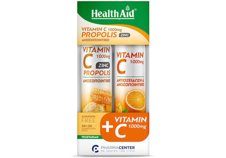 Health Aid Propolis + Zinc + Vit. C 1000mg Μέλι-Λεμόνι 20 αναβράζοντα δισκία + Vitamin C 1000mg Πορτοκάλι 20 αναβράζοντα δισκία