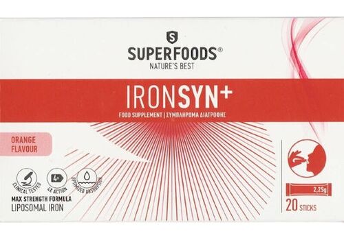 Το Superfoods Ironsyn+ είναι ένα προηγμένο συμπλήρωμα διατροφής, σχεδιασμένο για την αποτελεσματική πρόσληψη σιδήρου χωρίς τις τυπικές ενοχλητικές παρενέργειες.