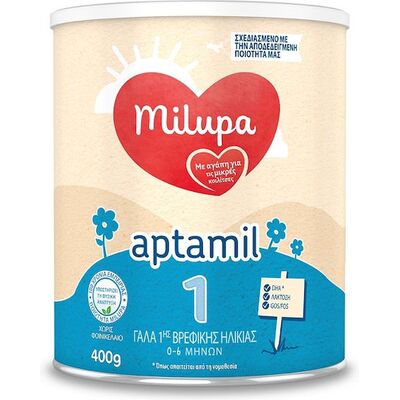 Το Aptamil 1 της Milupa είναι γάλα σε σκόνη για βρέφη από τη γέννηση έως τον 6ο μήνα και συμβάλλει στην άριστη και υγιή ανάπτυξη του βρέφους με τη σύνθεση "Ολοκληρωμένη Φροντίδα".