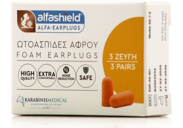 Alfashield Foam Earplugs (3 ζεύγη) - Άνετες Ωτοασπίδες Αφρού Μίας Χρήσης
