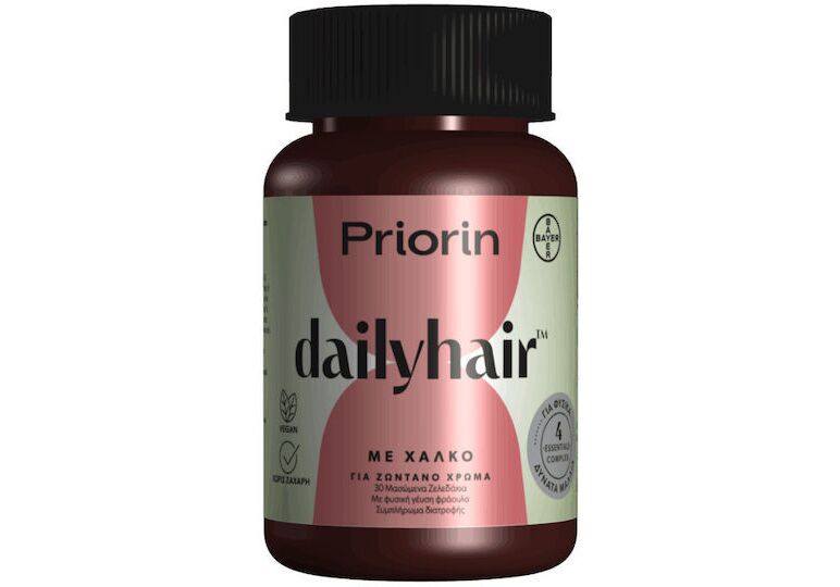 Το Priorin DailyHair με Χαλκό είναι ένα καινοτόμο συμπλήρωμα διατροφής σε μορφή μασώμενων gummies με γεύση φράουλα, που υποστηρίζει τη φυσική λάμψη και το ζωντανό χρώμα των μαλλιών.