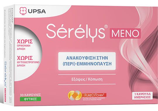 Το Upsa Serelys Meno είναι ένα εξειδικευμένο συμπλήρωμα διατροφής, σχεδιασμένο για ανακούφιση των συμπτωμάτων περιεμμηνόπαυσης και εμμηνόπαυσης, όπως οι εξάψεις και η παροδική κόπωση.