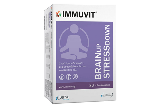 Leriva Brain Up Stress Down PS+PA Συμπλήρωμα Διατροφής για την Σωστή Λειτουργία του Εγκεφάλου και την Μείωση του Άγχους 30 μαλακά καψάκια