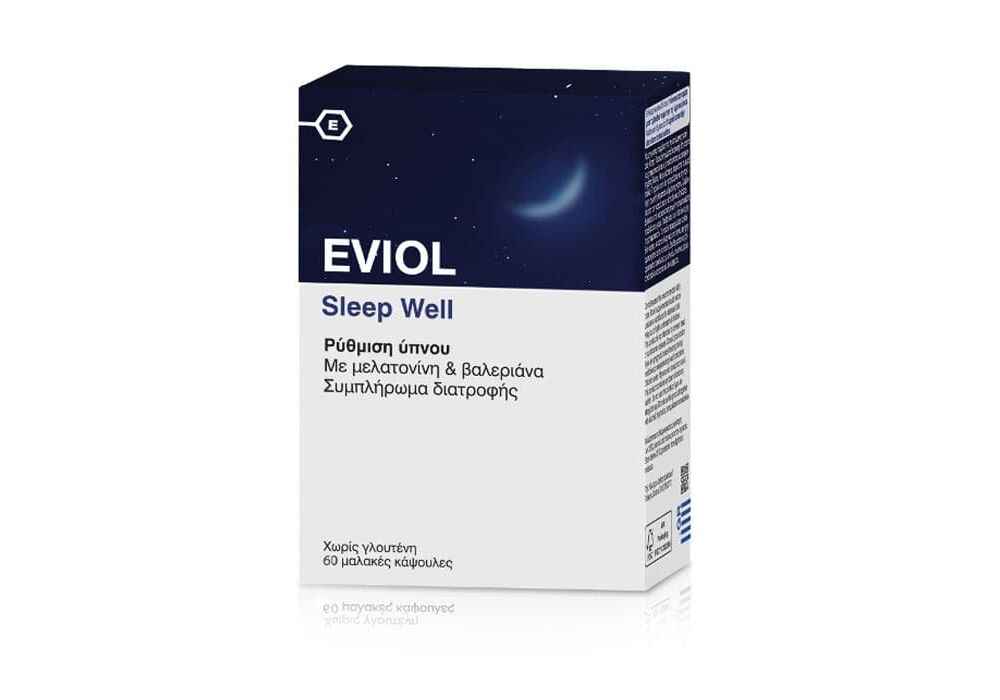Eviol Sleep Well Φόρμουλα με βαλεριάνα & μελατονίνη για την αντιμετώπιση της Αϋπνίας, 60caps