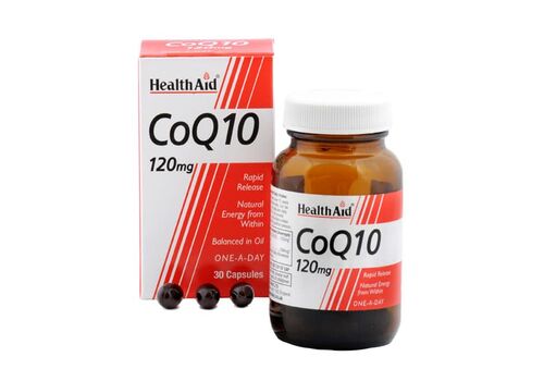 Το CoQ10 της HealthAid είναι συνένζυμο Q10 σε περιεκτικότητα 120mg ανά κάψουλα, σε ελαιώδες περιβάλλον(έλαιο φλοιού ρυζιού), για καλύτερη απορρόφηση από τον οργανισμό.