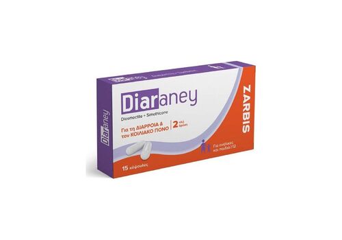 Το Diaraney είναι ένα προϊόν σχεδιασμένο για την αντιμετώπιση ολιστικά της διάρροιας και των παράπλευρων συμπτωμάτων, με φυσικό τρόπο, βελτιώνοντας την ποιότητα ζωής του ασθενούς.Το Diaraney, χάρη στο συνδυασμό 2 δραστικών συστατικών (διοσμεκτίτη και σιμεθικόνη):