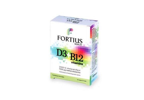 Geoplan Fortius D3 2500 iu+B12 1000 iu Vitamins Συμπλήρωμα διατροφής με D3 & B12, 30 δισκία