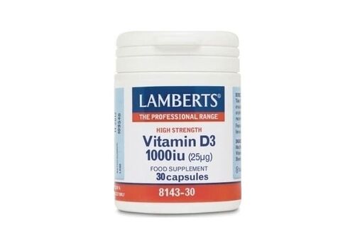 Η Βιταμίνη D 1000iu της Lamberts αποτελεί ένα κλινικά επιβεβαιωμένο συμπλήρωμα διατροφής το οποίο παρέχει εγγυημένα 1000iu (25μg) Βιταμίνης D σε μορφή χοληκαλσιφερόλης (D3) και όπως όλα τα σκευάσματα της Lamberts, παρασκευάζεται εντός του Ηνωμένου Βασιλείου σύμφωνα με τα αυστηρά πρότυπα της Φαρμακευτικής GMP (Pharmaceutical GMP).