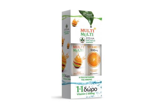 Power Health Multi Multi + Multi Πολυβιταμίνη με Στέβια 24 αναβράζοντα δισκία & Vitamin C Πορτοκάλι 500mg με Στέβια 20 αναβράζοντα δισκία Δώρο