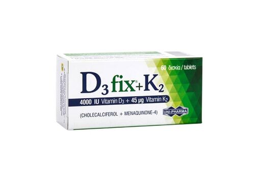 UNI-PHARMA D3 Fix + K2 Συμπλήρωμα Διατροφής Βιταμίνης D3 4000 IU & Βιταμίνης K2 45μg 60 Δισκία