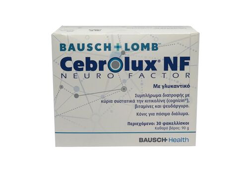 Το Cebrolux® NF NEUROFACTOR, είναι ένα συμπλήρωμα διατροφής με κύρια συστατικά την κιτικολίνη Cognizin®, αντιοξειδωτικές βιταμίνες και ψευδάργυρο. Χάρη στη σύνθεσή του, είναι ιδιαίτερα χρήσιμο σε εκείνες τις περιπτώσεις όπου υπάρχει φυσιολογική παρακμή των ουσιών που περιέχονται σε αυτό, όπως νευροεκφυλιστικές παθολογίες και υψηλά επίπεδα οξειδωτικού στρες, όπως το γλαύκωμα.