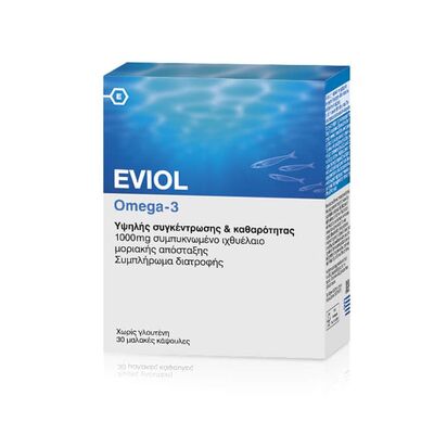 Eviol Omega-3 Συμπλήρωμα Διατροφής με Ωμέγα 3 Υψηλής Συγκέντρωσης & Καθαρότητας 30 Κάψουλες