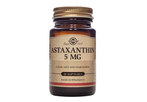 Το Astaxanthin 5mg της SOLGAR®περιέχει ένα φυσικό καροτινοειδές από το άλγος Haematococcus pluvialis (φύκι του γλυκού νερού) και διαθέτει ισχυρές αντιοξειδωτικές ιδιότητες.