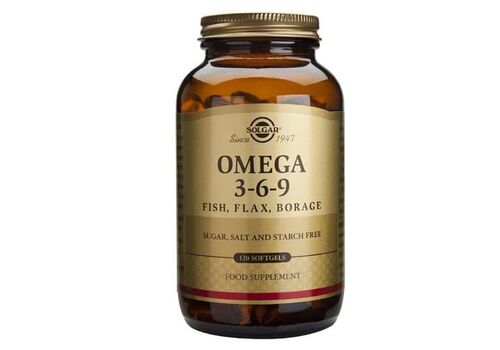 Solgar Omega 3-6-9 Συμπλήρωμα Διατροφής Λιπαρών Οξέων με Ιχυέλαιο, Λινέλαιο & Έλαιο Μποράγκο για την Καλή Φυσιολογική Λειτουργία του Εγκεφάλου, της Όρασης, των Επιπέδων Χοληστερόλης στο Αίμα & της Καρδιάς 120 softgels