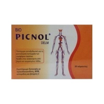 Το Medichrom Bio Picnol Delm είναι ένα αντιοξειδωτικό συμπλήρωμα διατροφής με αντιοξειδωτικές ουσίες που συμβάλλουν στην ακεραιότητα των αγγείων καθώς και στην ανακούφιση των κουρασμένων ποδιών.