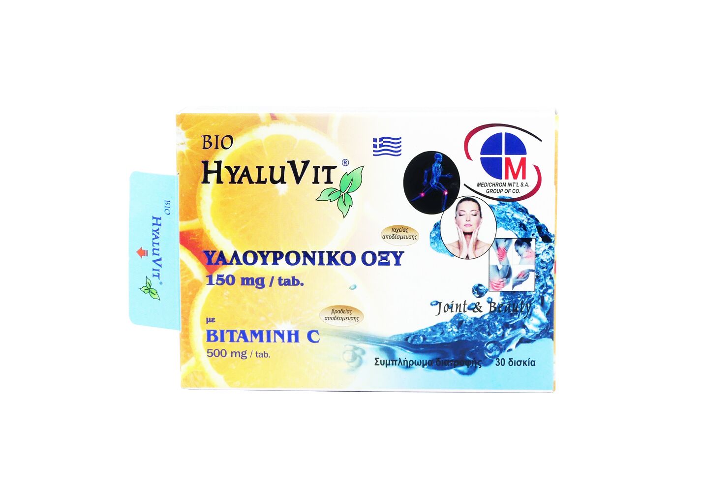 Medichrom Hyaluvit 150mg Υαλουρονικό Οξύ & 500mg Vitamin C 30 Δισκία