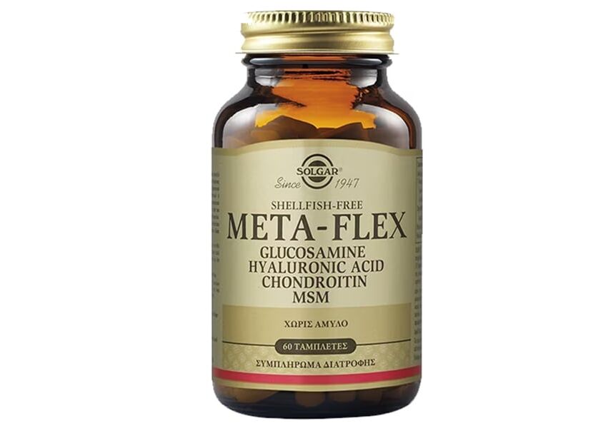Το συμπλήρωμα διατροφήςMeta-Flex (Glucosamine - Hyaluronic Acid - Chondroitin - MSM) της SOLGAR®είναι ένας πρωτοποριακός αποτελεσματικός συνδυασμός υδροχλωρικής γλουκοζαμίνης, θειικής χονδροϊτίνης, υαλουρονικού οξέος και οργανικού θείου, ο οποίος παρέχει στον οργανισμό το κατάλληλο δομικό υλικό.