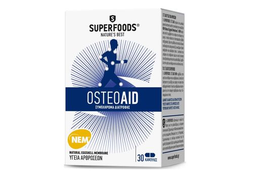 SUPERFOODS OSTEOAIDthanks to the innovative ingredient NEM® it contains, contributes to the support of the joints , in the better movement of the joints and in the improvement of stiffness. It has an excellent safety profile by taking only 1 capsule daily.