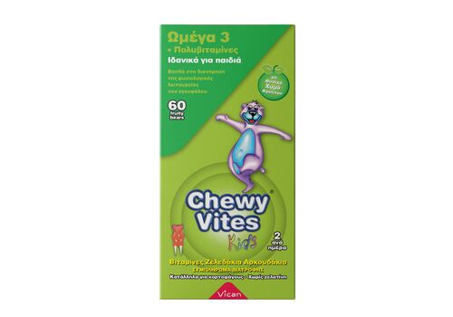 Συμπλήρωμα διατροφής σε ζελεδάκια-αρκουδάκια με βιταμίνες και ωμέγα-3 λιπαρά οξέα που προσφέρει τόνωση και ενέργεια, ενώ συμβάλλει στην ενίσχυση του ανοσοποιητικού συστήματος και στη διατήρηση της φυσιολογικής ανάπτυξης και λειτουργίας του εγκέφαλου. Με φυσικό χυμό φρούτων.