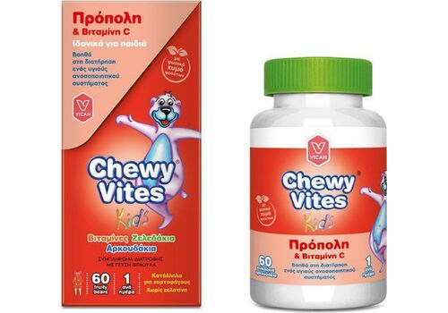 Chewy Vites Kids Propolis & Βιταμίνη C Συμπλήρωμα Διατροφής για Παιδιά με Πρόπολη & Βιταμίνη C με Γεύση Φράουλα 60 Μασώμενα Ζελεδάκια