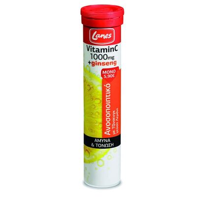 Η Lanes Βιταμίνη C 1000mg ενισχυμένη με εκχύλισμα Panax Ginseng είναι ιδανικό συμπλήρωμα για την τόνωση του ανοσοποιητικού, την ενίσχυση της άμυνας και τη θωράκιση του οργανισμού ενάντια στο κοινό κρυολόγημα ενώ παράλληλα τονώνει τον καταπονημένοαπό το κρυολόγημα οργανισμό, επαναφέροντάς τον. Δίνει ζωντάνια και ενέργεια στον οργανισμό ενώ παρέχει και αντιοξειδωτική προστασία.