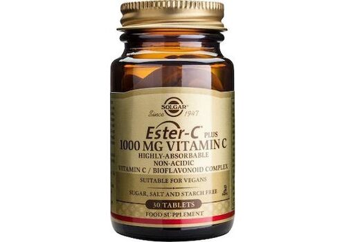 Solgar Ester-C Plus 1000mg Vitamin C Συμπλήρωμα Διατροφής Βιταμίνης C για την Καλή Υγεία του Ανοσοποιητικού & την Προστασία του Οξειδωτικού Στρες 30 Ταμπλέτες
