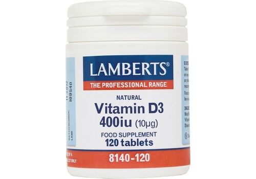 Η Vitamin D 400iu της Lamberts αποτελεί συμπλήρωμα διατροφής το οποίο παρέχει εγγυημένα 400iu (10μg) Βιταμίνης D σε μορφή χοληκαλσιφερόλης (D3) και όπως όλα τα σκευάσματα της Lamberts, παρασκευάζεται εντός του Ηνωμένου Βασιλείου σύμφωνα με τα αυστηρά πρότυπα της Φαρμακευτικής GMP (Pharmaceutical GMP).