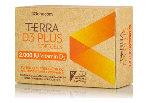 Genecom Terra D3 Plus 2000 IU Softgels Συμπλήρωμα Διατροφής με D3, 60 Softgels