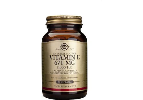 Το συμπλήρωμα διατροφής Vitamin E 671mg (1000IU) της Solgar περιέχει φυσικής πηγής βιταμίνη Ε ως d-άλφα τοκοφερόλη με ανανεμιγμένες τοκοφερόλες. Η d-άλφατοκοφερόλη μαζί με τις ανανεμιγμένες τοκοφερόλες παρουσιάζει μεγαλύτερες αντιοξειδωτικές ιδιότητες σε σχέση με τη μεμονωμένη d-άλφατοκοφερόλη.