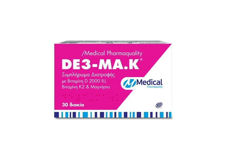 To DE3-MA.K/Medical Pharmaquality είναι μια ειδικά σχεδιασμένη φόρμουλα που περιέχει Βιταμίνη D, Βιταμίνη Κ2 και Μαγνήσιο.