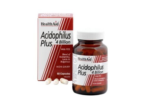 Το Acidophilus Plus της HealthAid αποτελεί συνδυασμό 3 προβιοτικών στελεχών (Lactobacillus Acidophilus, Lactobacillus Bulgaricus, Bifidobacterium Lactis), , σε ποσότητα 4 δισεκατομμυρίων/κάψουλα, μαζί με πρεβιοτικά (FOS) για μέγιστο αποτέλεσμα.