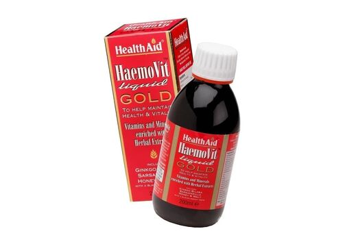 Το HaemoVit liquid Gold της HealthAid περιέχει Σίδηρο, Βιταμίνη Β12 και Φολικό οξύ, συστατικά απαραίτητα στη δημιουργία υγιών ερυθρών αιμοσφαιρίων. Ακόμα τιτλοδοτημένα εκχυλίσματα βοτάνων όπως Ginseng, Ginkgo biloba και Sarsaparilla, που δίνουν ενέργεια, δύναμη και ζωντάνια. Η Βιταμίνη C που περιέχει είναι απαραίτητη για την απορρόφηση του σιδήρου από τον οργανισμό.