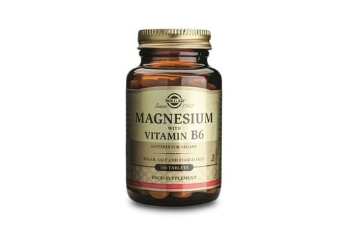 Συμπλήρωμα διατροφής Magnesium+B6 της Solgar για ενήλικες, η οποία προμηθεύει τον οργανισμό με τις απαραίτητες ποσότητες μαγνησίου και βιταμίνης B6. Το μαγνήσιο είναι απαραίτητο για την ομαλή λειτουργία των επινεφριδίων και για την ομαλοποίηση των συμπτωμάτων που σχετίζονται με το στρες, ενώ παράλληλα προάγει την ομαλή παραγωγή ενέργειας στο σώμα. Ακόμη, βοηθάει στην αποβολή της αμμωνίας από τον οργανισμό και τη ρύθμιση των καρδιακών παλμών. Η βιταμίνη B6 από την άλλη είναι απαραίτητη για το νευρικό σύστημα και την ομαλή λειτουργία του εγκεφάλου και τη σύνθεση των RNA, DNA. συμβάλει στη μείωση των συμπτωμάτων του προεμμηνορροϊκού συνδρόμου, διατήρώντας την ισορροπία των υγρών του οργανισμού και βοηθώντας στον μεταβολισμό των απαραίτητων λιπαρών οξέων. Κατάλληλο για vegans.